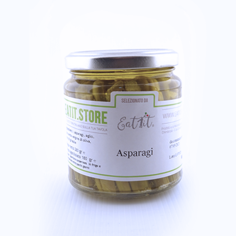Exquisitos espárragos en aceite de oliva en tarro de cristal.